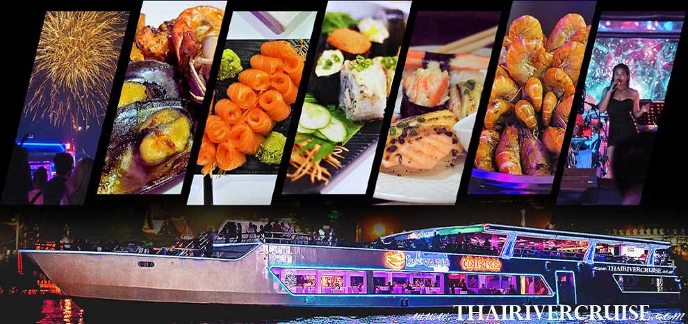 Including as; • Cruise trip • Live music,Thai dance,Cabaret Show • International buffet & seafood • Red Wine White Wine, Beer, Soft drink • Watch firework • Cruise trip along the program