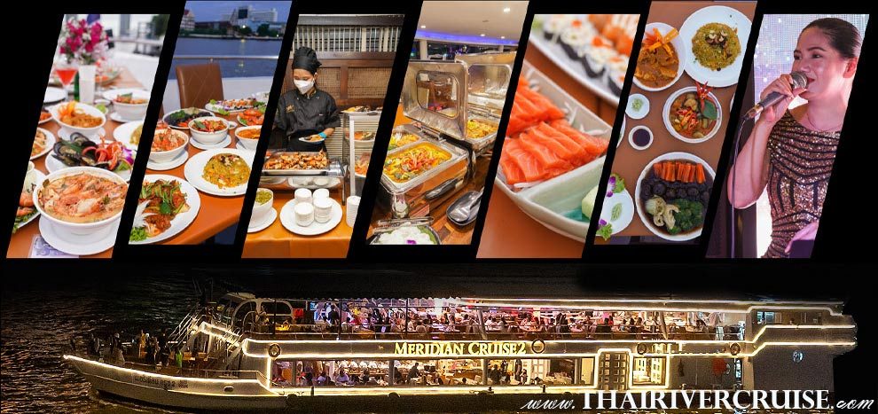 Bangkok New Year Eve 2026 dinner cruise by Meridian Cruise2 , experience to see countdown night river sightseeing the most attractions such as the temple of down, Grand palace, Rama 8 bridge, 5-star river hotel, Asiatique the riverfront and IconSiam. Listening to the live music from over experienced and entertained singer, Let is crated you memorable cruise experience.