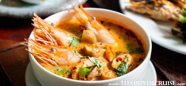 The cruise features a full program of entertainment, including live pop and jazz music by a band, a DJ set for dancing, traditional Thai classical dance performances, and exciting lucky draw activities.