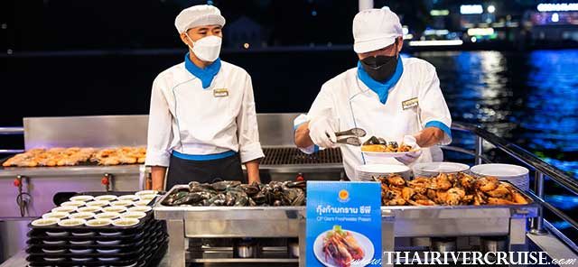 Your New Year's Eve 2026 Bangkok Rooftop package is inclusive of an extensive International Gala Buffet designed to cater to discerning tastes. The dining experience is a key highlight of the Luxury White Cruise New Year 2026 event.